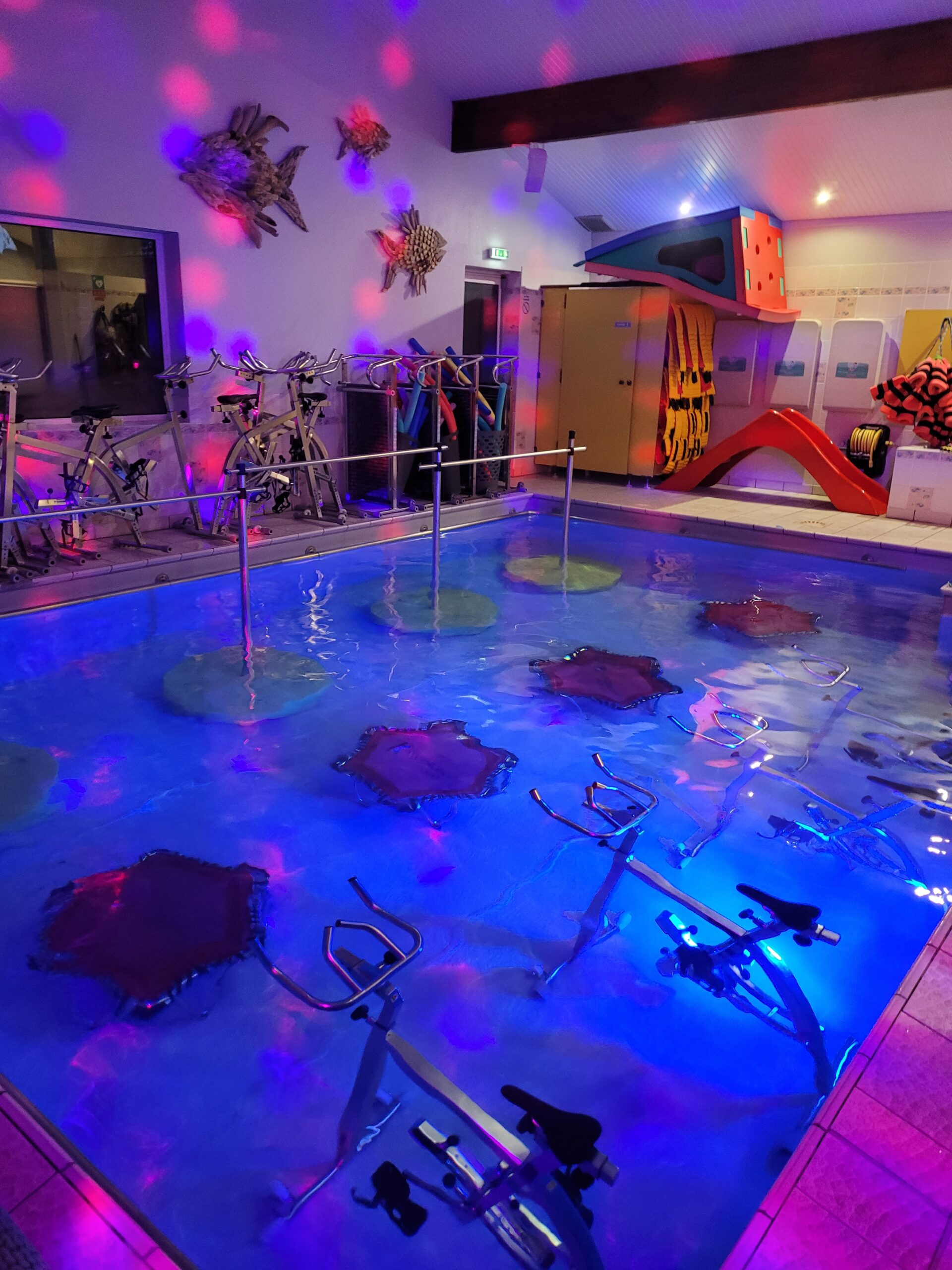 Plus dynamique, l’aquafitness reprend les bases de l’aquagym en y ajoutant de l’intensité et l’utilisation de matériel varié comme des gants de boxe, haltères, ceintures, planches, step ou encore des circuits training. Les séances de 45 minutes permettent un travail cardio plus soutenu et un renforcement musculaire plus intense, tout en profitant des bienfaits de l’eau. L’aquafitness est idéal pour celles et ceux qui souhaitent se dépasser, se tonifier et améliorer leur condition physique dans une ambiance motivante et énergique.